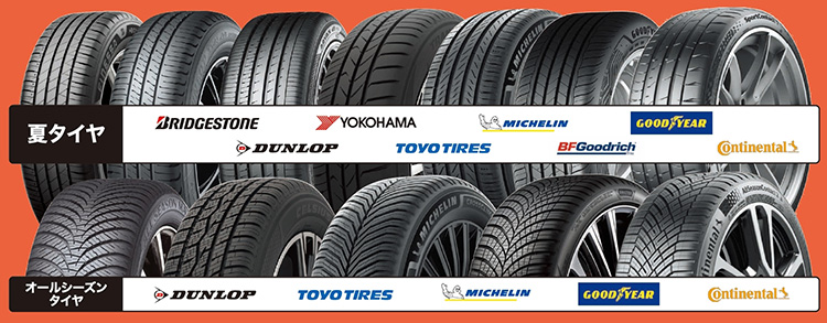 夏タイヤはブリヂストンタイヤ/ダンロップタイヤ/ヨコハマタイヤ/トーヨータイヤ/ミシュランタイヤ/ BFグッドリッチタイヤ/グッドイヤータイヤ/コンチネンタルタイヤが還元対象メーカーです。